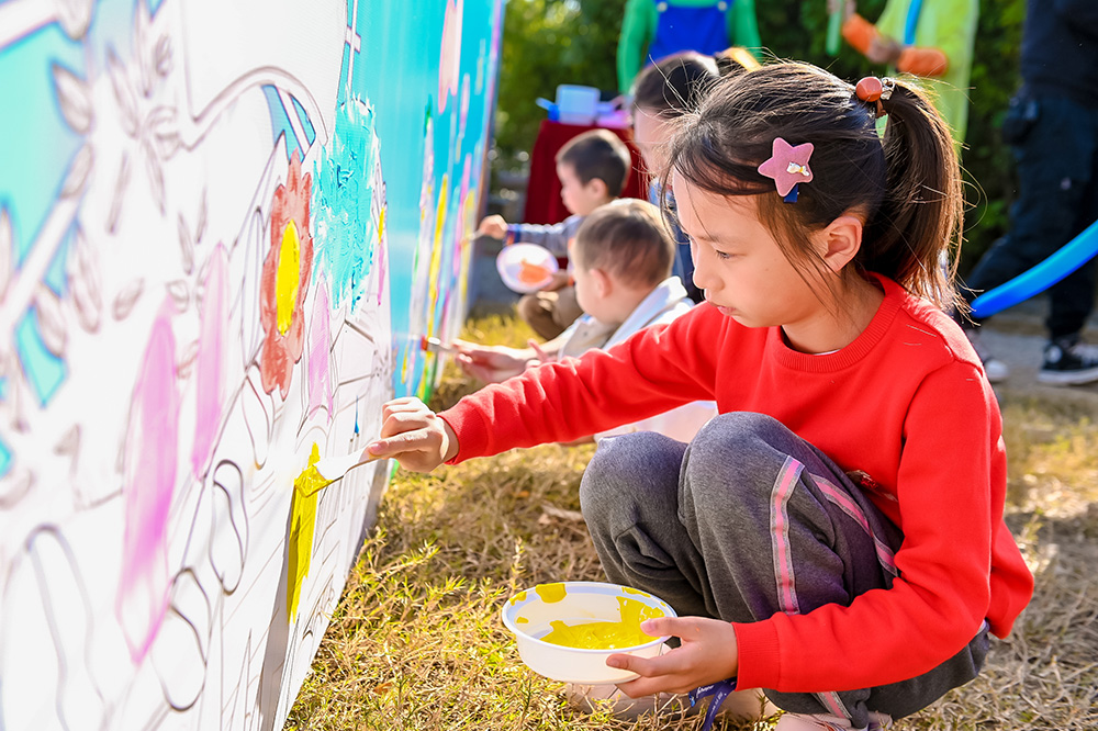 定制顺普元素的创意涂鸦墙,抵达场地的顺普的小小勇士们,拿起彩色刷子在有趣的画面上“创意涂鸦”,一起开启本次的快乐之旅。